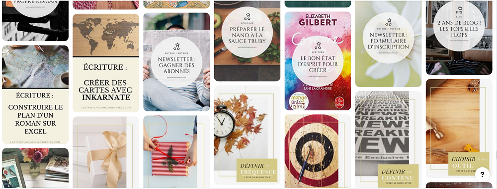 En plus d’un tableau dédié à vos livres, vous pouvez créer des tableaux en rapport avec vos personnages ou épingler des images en rapport avec le cadre de votre livre. Épinglez également des livres que vous aimez ou des citations liées à l’écriture. Vous pouvez aussi partager des épingles en lien avec l’écriture même si vous ne créez pas ce type de contenu sur votre blog.